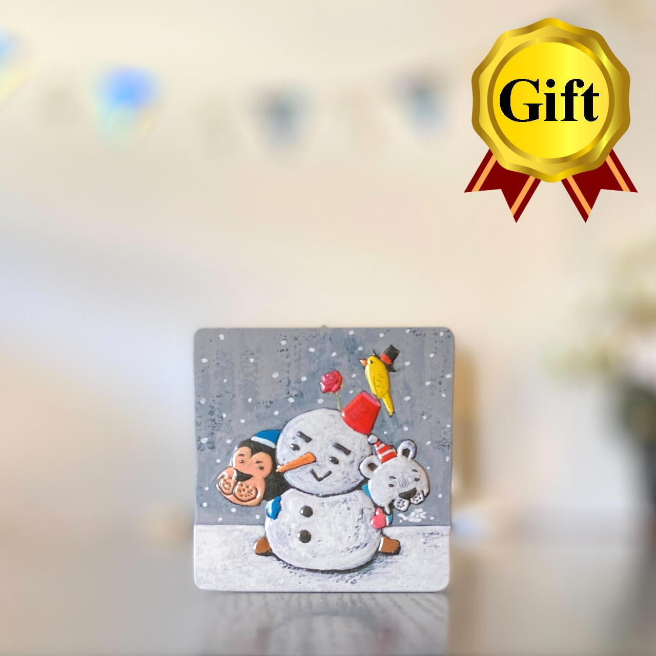 現在は、可愛いサルとシロクマが雪だるまを作っている冬限定のデザインです。