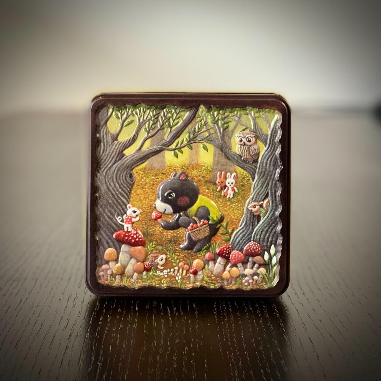 くまと森の仲間たちが描かれた缶に、当店人気の『黄金井メレンゲ』をたっぷり詰めた商品です。