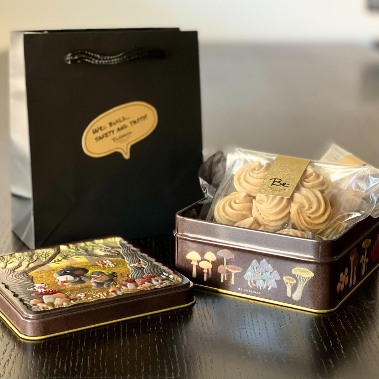 SMILE&HAPPY缶 メレンゲ 2袋 人気 焼き菓子 ギフト 贈り物 可愛い缶 くまときのこ缶